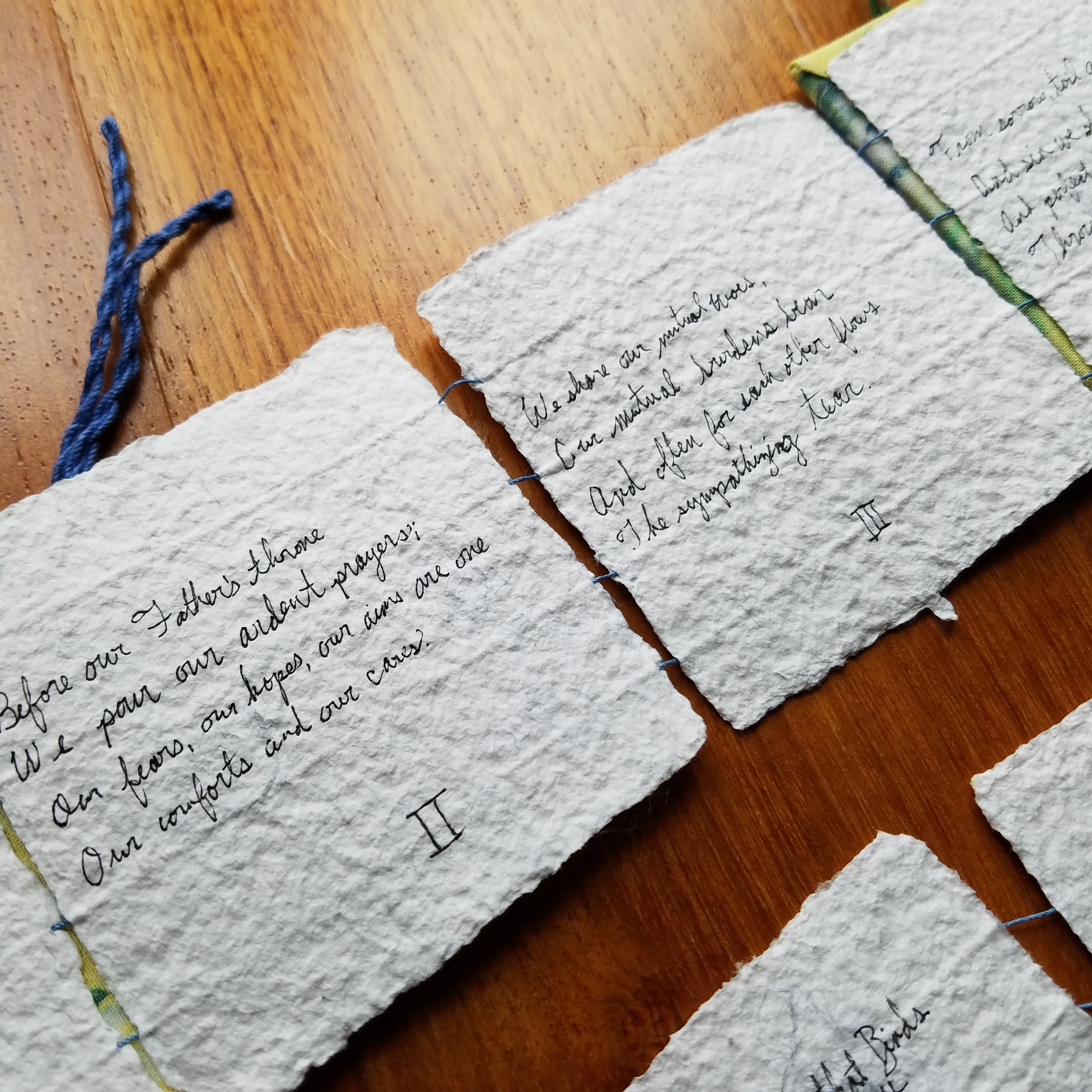 This art book is an edition of two, made for my mother and I. The text is from the hymn “Blest be the ties that bind,” a favorite of mine in childhood.